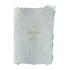 Sea foam handmade paper with gold foil text. Back is letterpress printed with a small note including information about the natural dyes used to color each unique piece of paper.